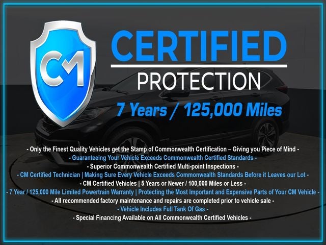 Certification Program Details: CM Certified with powertrain coverage up to 7 years and 125,000 miles. Vehicle is Covered by the CM Certified Protection 7 year and 125,000-mile limited powertrain warranty. Warranty coverage is available across all 50 states. • Vehicle must pass a strict 162-point Factory Directed inspection • Vehicles include a Carfax history Report • All recommended factory maintenance and repairs completed prior to vehicle sale • Vehicle includes a full cosmetic reconditioning and interior renewal • Full tank of gas • Rental and Tow assistance for qualified repairs