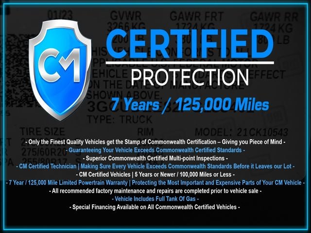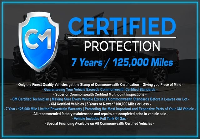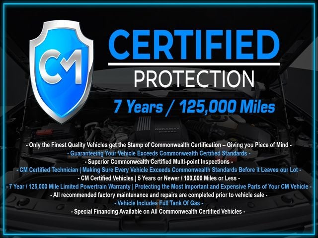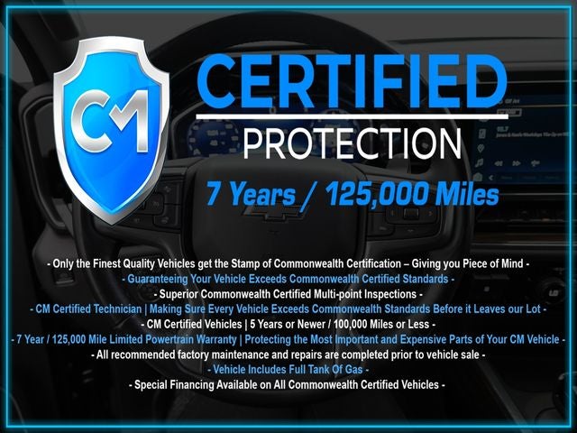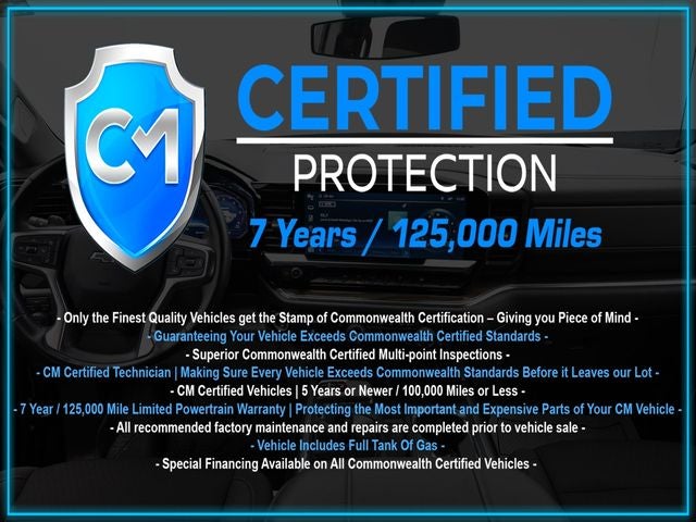 - CM CERTIFIED VEHICLE with an exclusive 7-year, 125,000-mile powertrain warranty